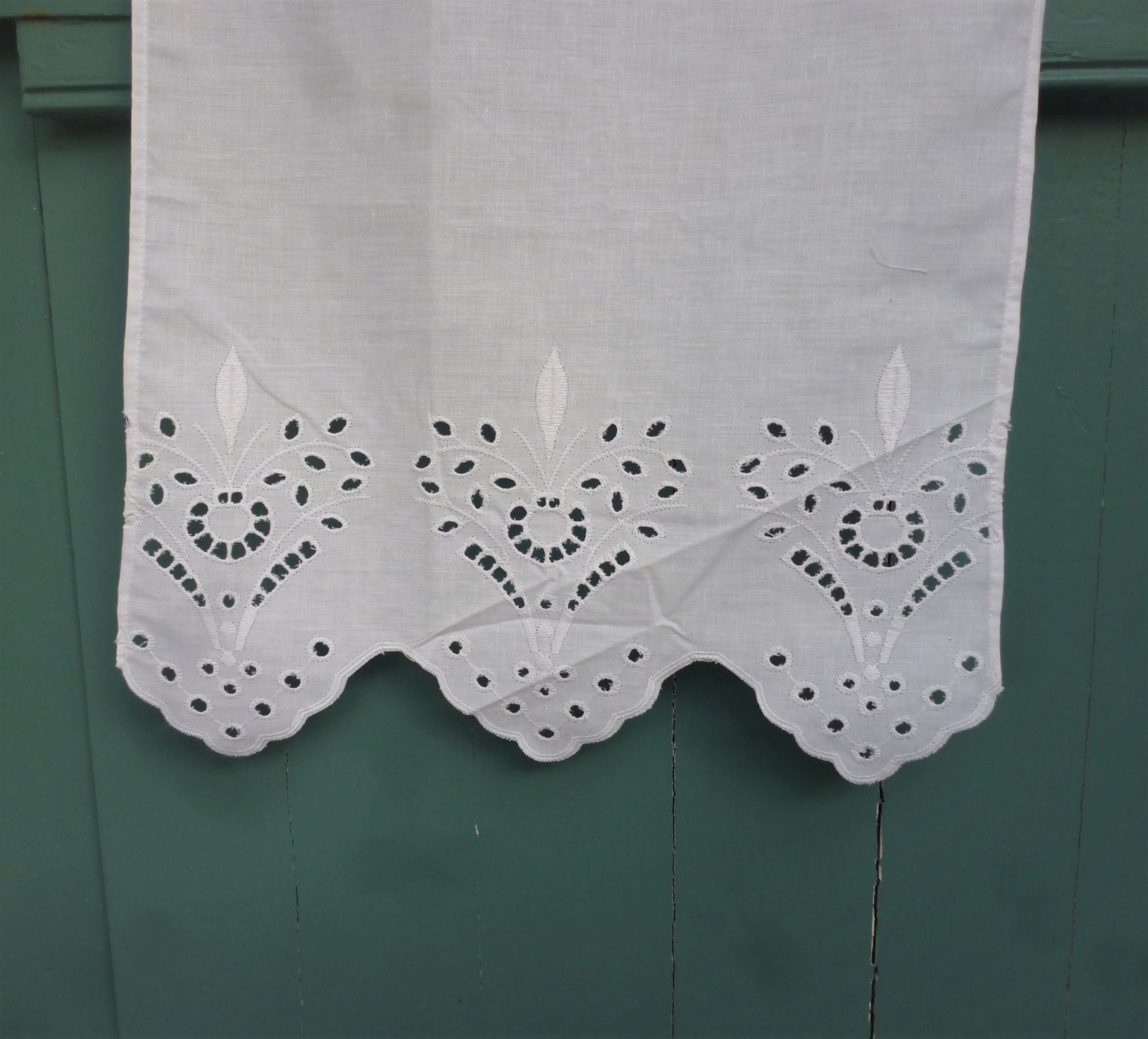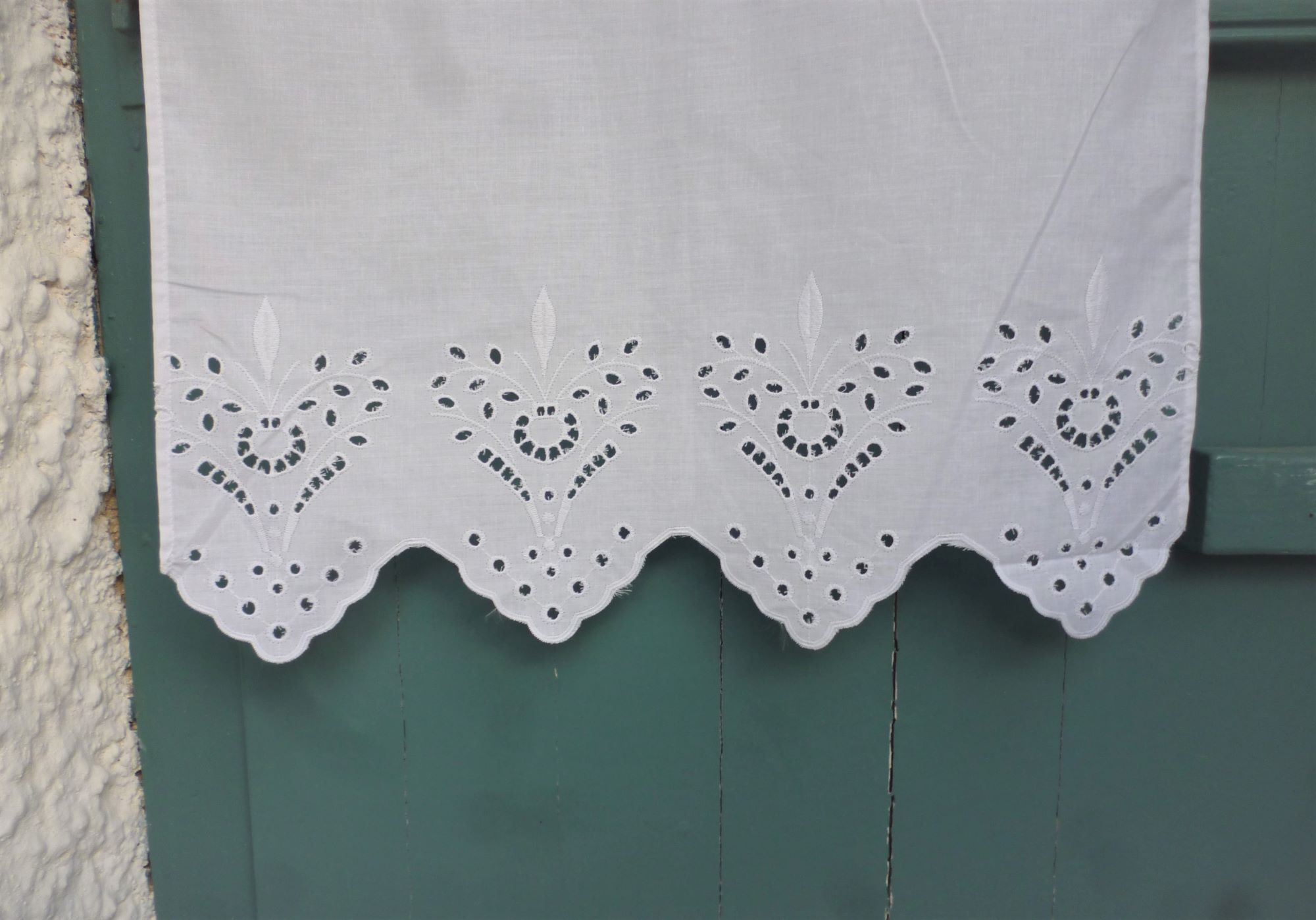 Impressive cutwork curtain with orchid designs, machine made embroidery on white cotton textile. The height is adaptable from 90 cm to 130 cm, let us know in which height you wish your curtain to be sewed.